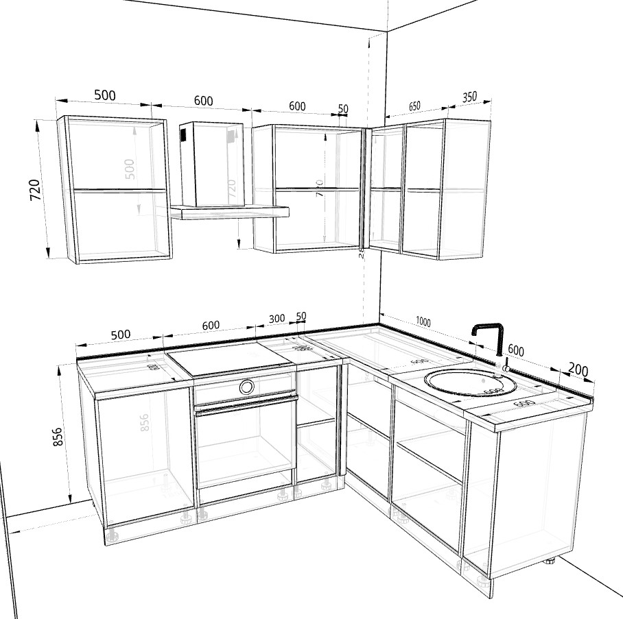 Кухонный гарнитур Арина GKK1016 не должен иметь следов сборки и эксплуатации;